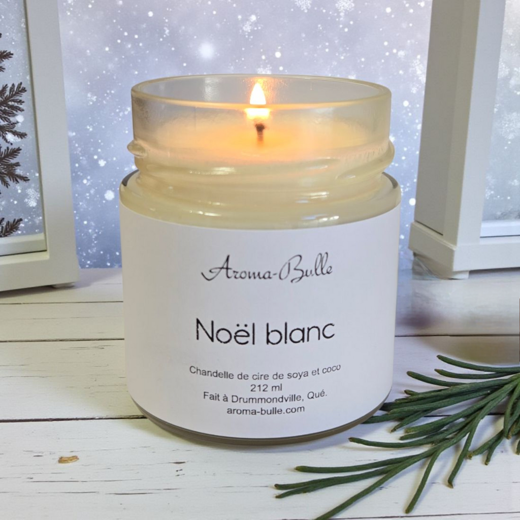 Noël Blanc est un mélange craquant de sapin, d'écorce de cèdre et d'eucalyptus! Vous vous sentirez comme lors d'une marche dans les bois après une belle neige!
